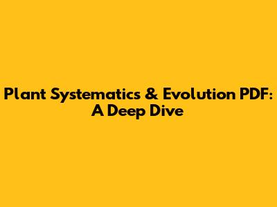 Diving into the Plant Systematics & Evolution PDF