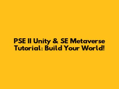 PSE II Unity & SE Metaverse Tutorial: Build Your World!