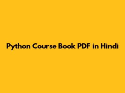 Python Course Book PDF In Hindi
