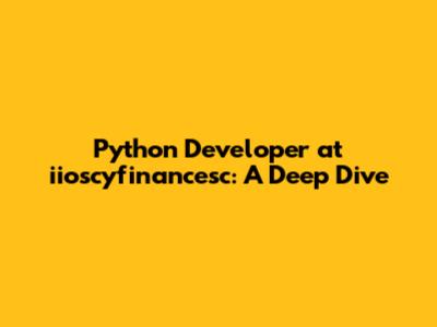 Python Developer At Iioscyfinancesc: A Deep Dive