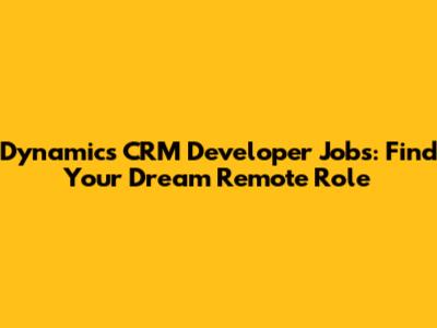 Remote Dynamics CRM Developer Jobs: Find Your Dream Role