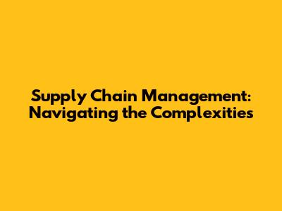 Understanding Supply Chain Management Issues