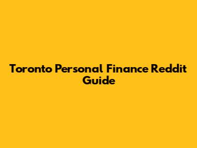 Toronto Personal Finance Reddit Guide