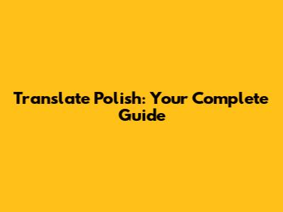 Translate Polish: Your Complete Guide