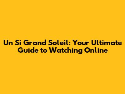 Understanding Un Si Grand Soleil and Its Global Appeal