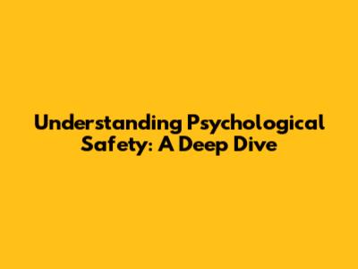 Understanding Psychological Safety: A Deep Dive