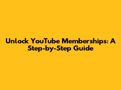 Unlock YouTube Memberships: A Step-by-Step Guide