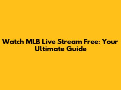 Watch MLB Live Stream Free: Your Ultimate Guide
