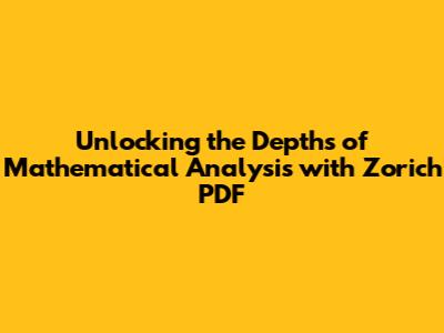 Zorich Mathematical Analysis PDF: Key Insights